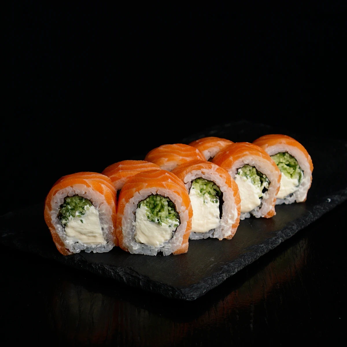слабосолений лосось, сир філадельфія, огірок, вершковий сир