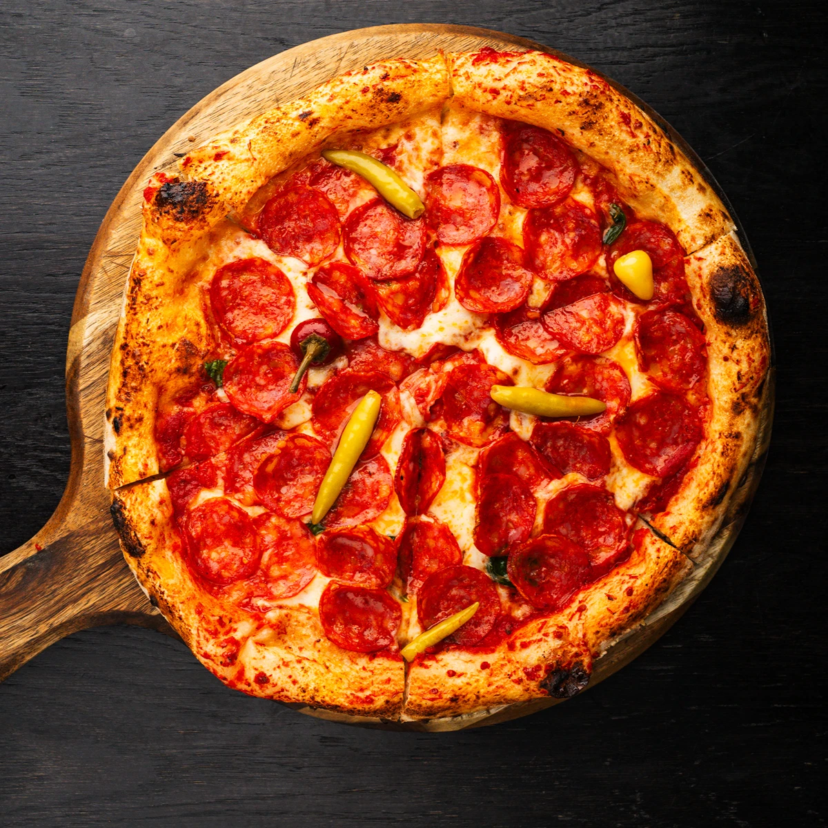 томатна основа, базилік, салямі папероні, халапеньо, сир моцарела