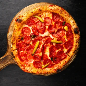 томатна основа, базилік, салямі папероні, халапеньо, сир моцарела