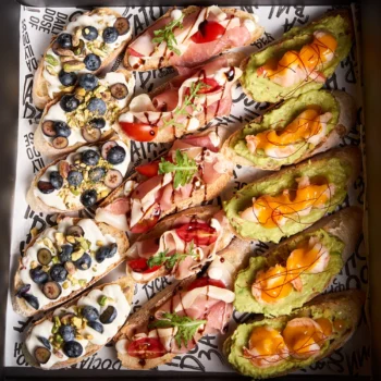 Набір яскравих смаків: делікатесний хамон, соковита креветка та пікантний козячий…